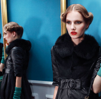 收腰大衣、大大的傘裙塑造的LOOK都如同希區柯克金發女郎。